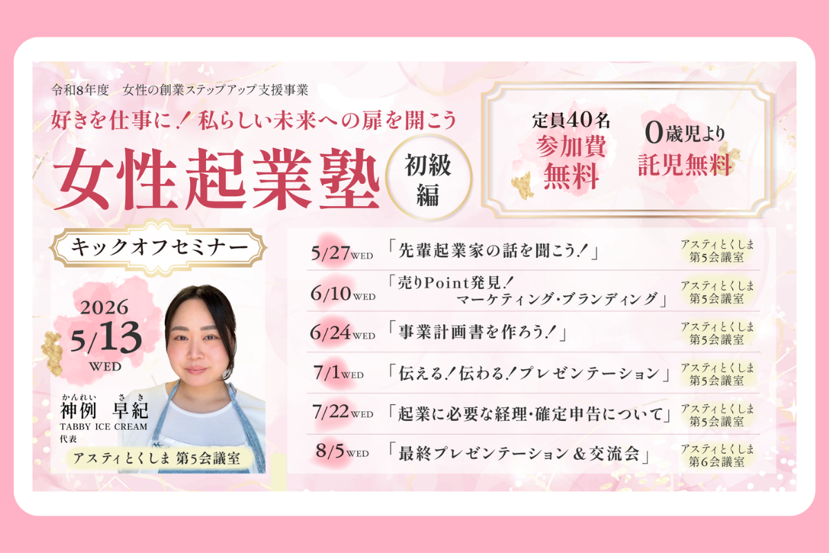 5月スタート!令和8年度女性起業塾初級編 申込開始!