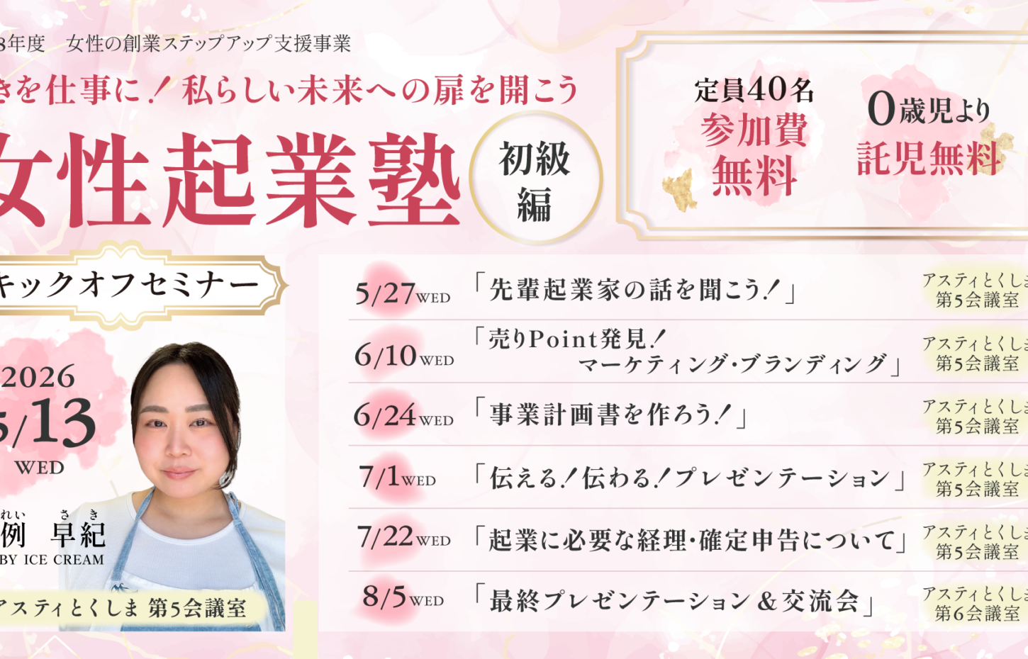 保護中: 5月スタート!令和8年度女性起業塾初級編 申込開始!